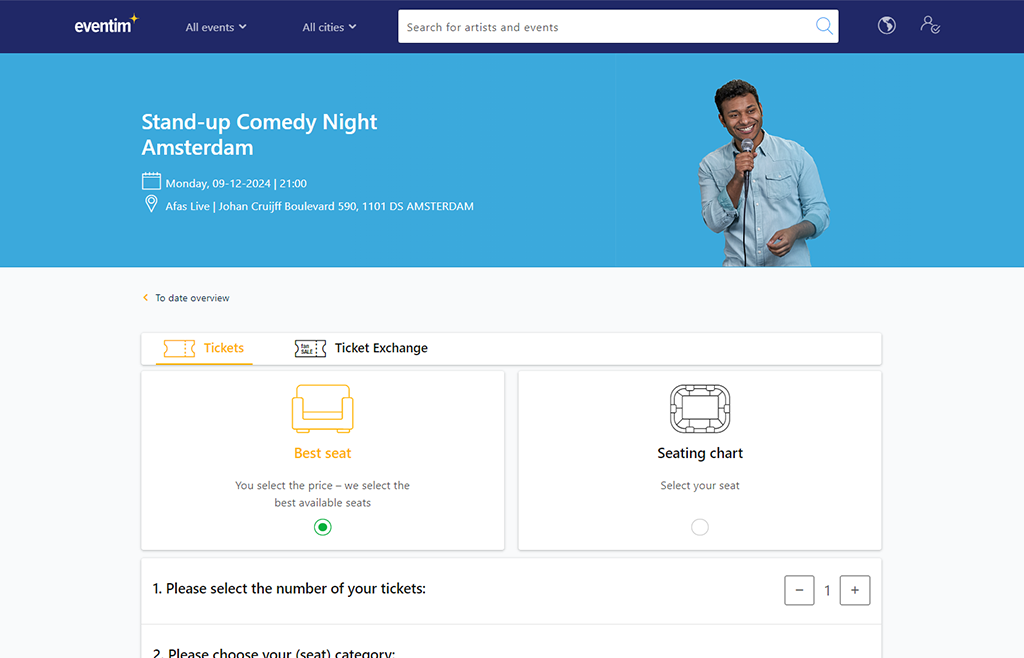 Several million people visit the websites of EVENTIM every day. Access this sales strength and decide to sell your tickets on eventim.nl. You gain access to several million website contacts per year and increase the chances of a sold-out event.