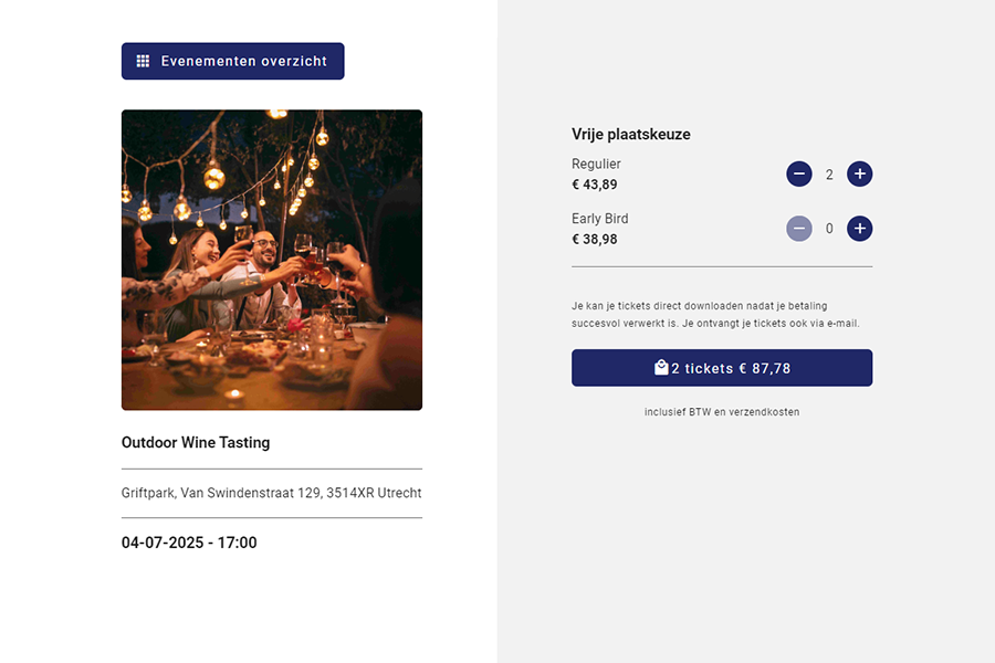 - Jouw ticketshop personaliseren: Maak een professionele ticketshop in het design van jouw website - allemaal geen probleem met onze tool.
