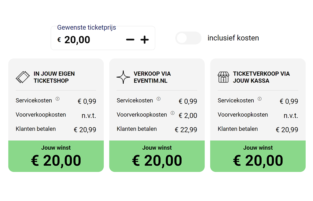 - Profiteer van het grote bereik van EVENTIM en zet jouw event op eventim.nl met een jaarlijks bereik van meer dan 3 miljoen unieke bezoekers.