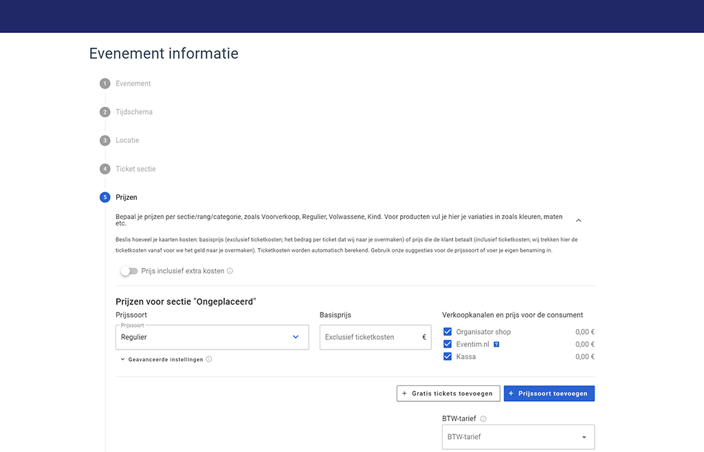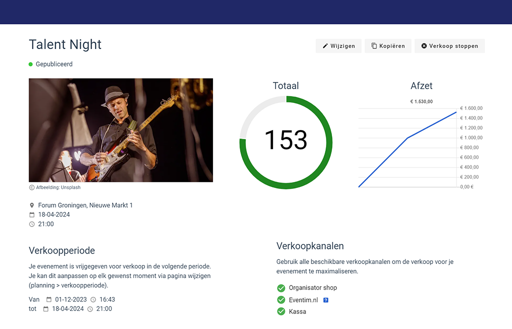 - Zet additionele verkoopkanalen in: door eventim.nl te activeren kun je tickets verkopen met een groter bereik.