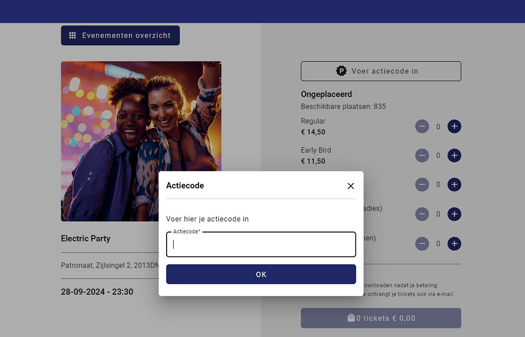 Verhoog de koopbereidheid van potentiële kaartkopers met promotionele campagnes. Beloon verschillende groepen kopers en betrek advertentiepartners en andere partijen bij de marketing van jouw events.